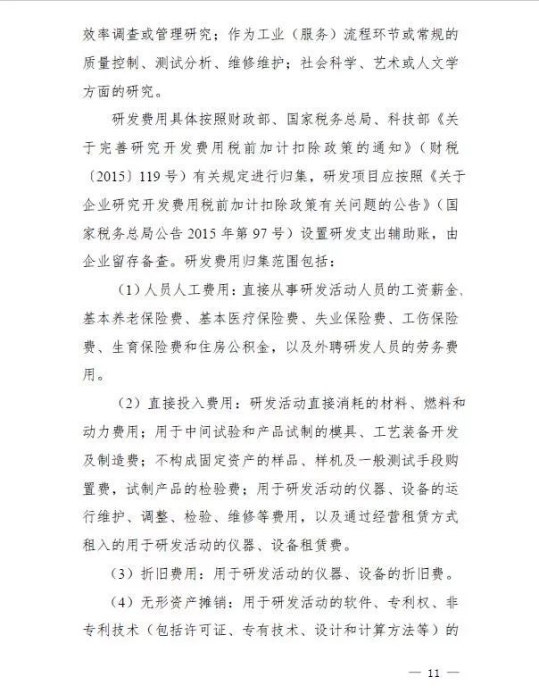 科技型中小企業(yè)開展研發(fā)活動中實際發(fā)生的研發(fā)費用,未形成無形資產(chǎn)計入當期損益的,在按規(guī)定據(jù)實扣除的基礎(chǔ)上,在2017年1月1日-2019年12月31日期間,再按照實際發(fā)生額的75%在稅前加計扣除;形成無形資產(chǎn)的,在上述期間按照無形資產(chǎn)成本的175%在稅前攤銷。研究開發(fā)費用口徑按照《財政部 國家稅務(wù)總局 科技部關(guān)于完善研究開發(fā)費用稅前加計扣除政策的通知》(財稅〔2015〕119號)規(guī)定執(zhí)行。