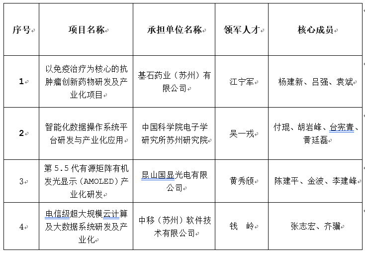 2017年*一批姑蘇創新創業領軍人才計劃重大創新團隊擬立項候選項目