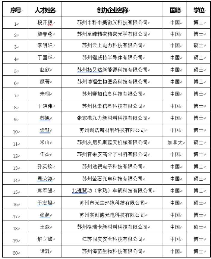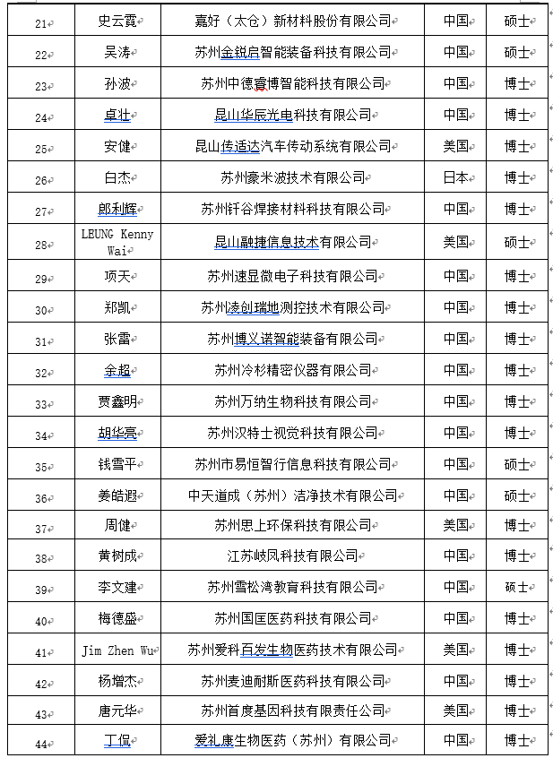 2017年*一批姑蘇創新創業領軍人才計劃創業領軍人才擬立項候選項目